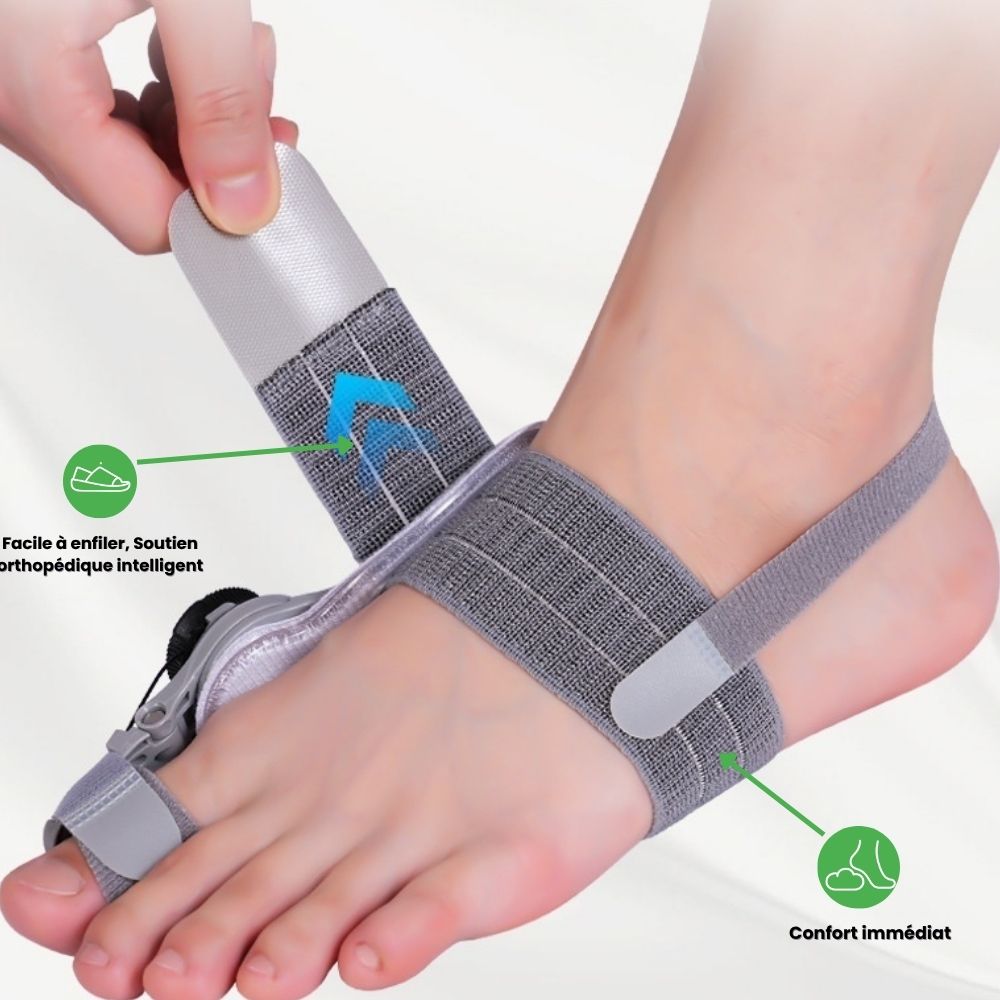 Le mécanisme de traction réglable redresse le gros orteil de manière naturelle, réduisant la déviation sans douleur ni effort.