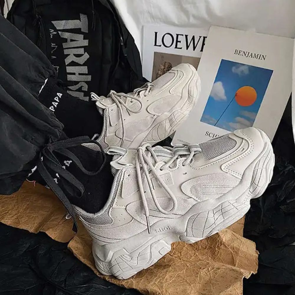 Composition principale : maille technique et cuir PU souple, combinant respirabilité et maintien pour un confort optimal au quotidien. La structure flexible s’adapte naturellement à la forme du pied, offrant une sensation de liberté à chaque pas.