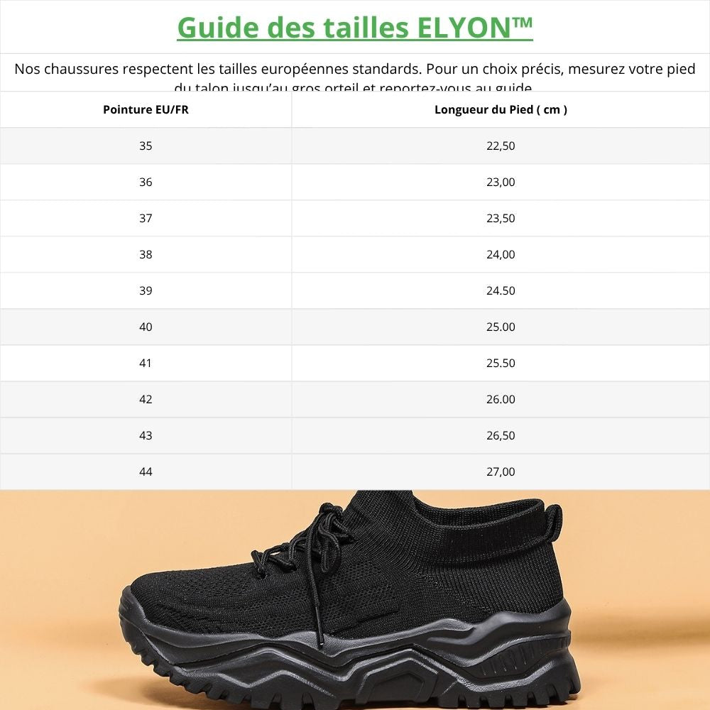 Modernes et légères, les baskets ELYON™ allient technologie respirante et design contemporain pour offrir un confort optimal du matin au soir. Leur conception en maille souple et extensible épouse naturellement la forme du pied, assurant une sensation de liberté et de maintien incomparable — que ce soit pour vos sorties, vos journées actives ou vos moments de détente.