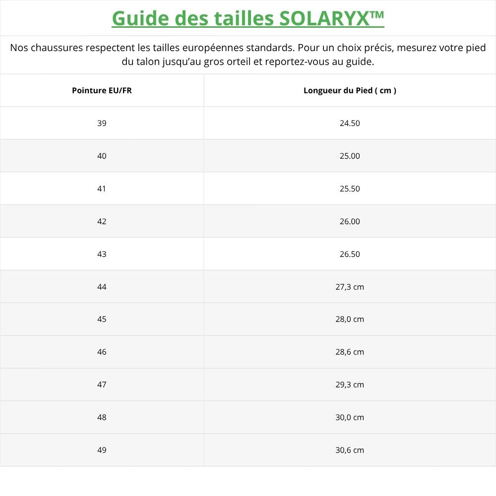 Modernes et résistantes, les SOLARYX™ combinent technologie orthopédique et style sobre pour offrir un bien-être durable à chaque pas.
