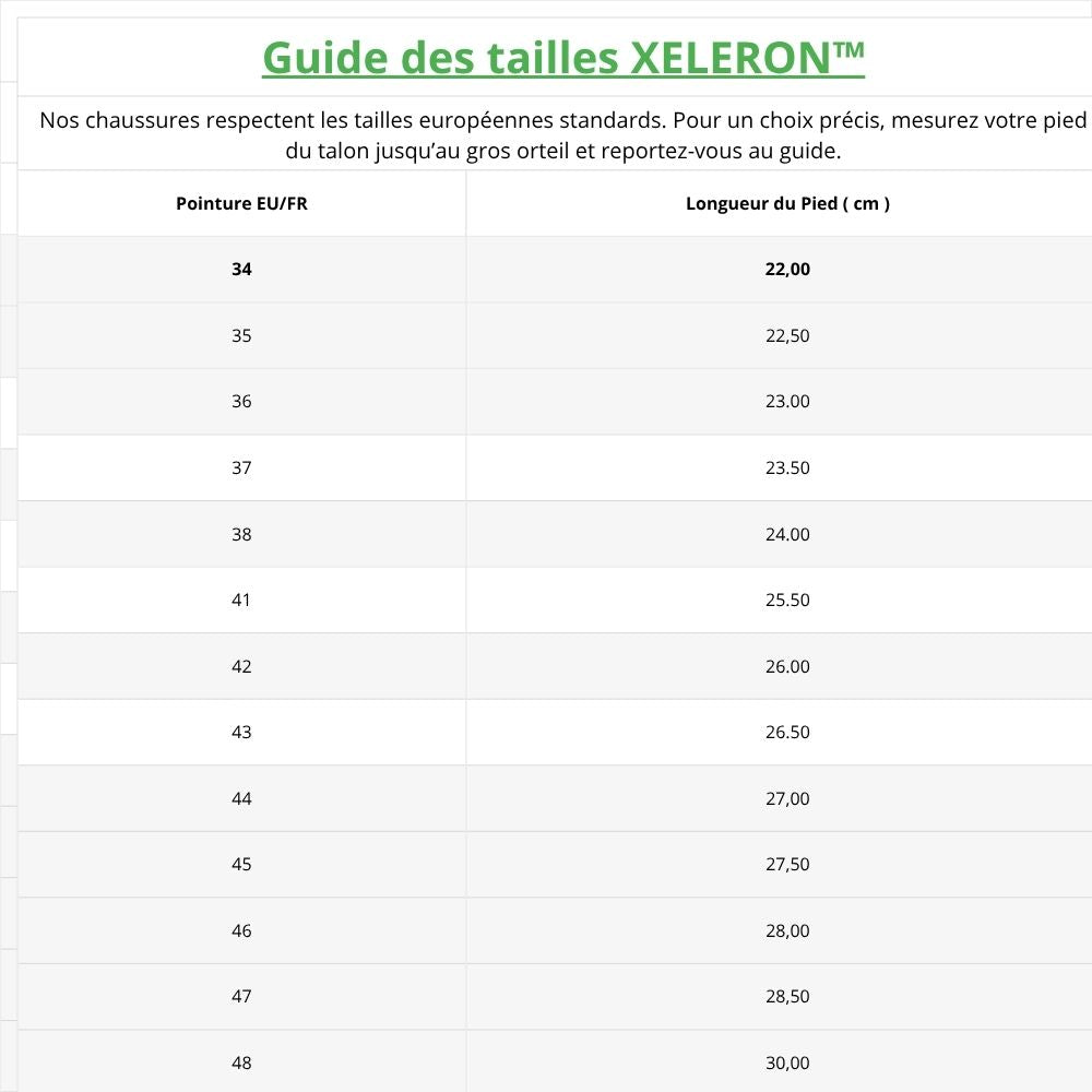 Nos chaussures respectent les tailles européennes standards.
