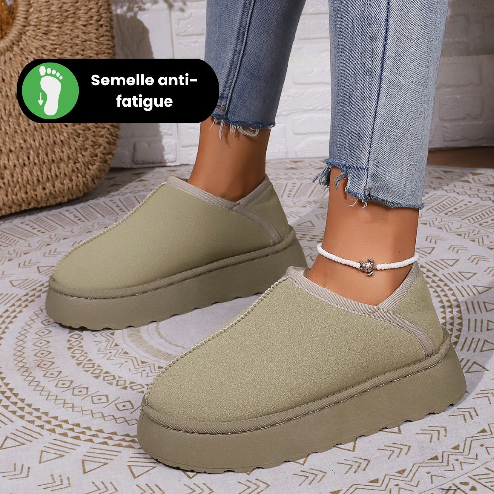 Douces et enveloppantes, les CozyStep™ associent chaleur, confort et élégance décontractée pour accompagner vos journées avec une sensation de bien-être immédiat. Leur matière en suédine souple et leur conception ergonomique épousent naturellement la forme du pied pour un maintien stable et une marche agréable, en intérieur comme en extérieur.