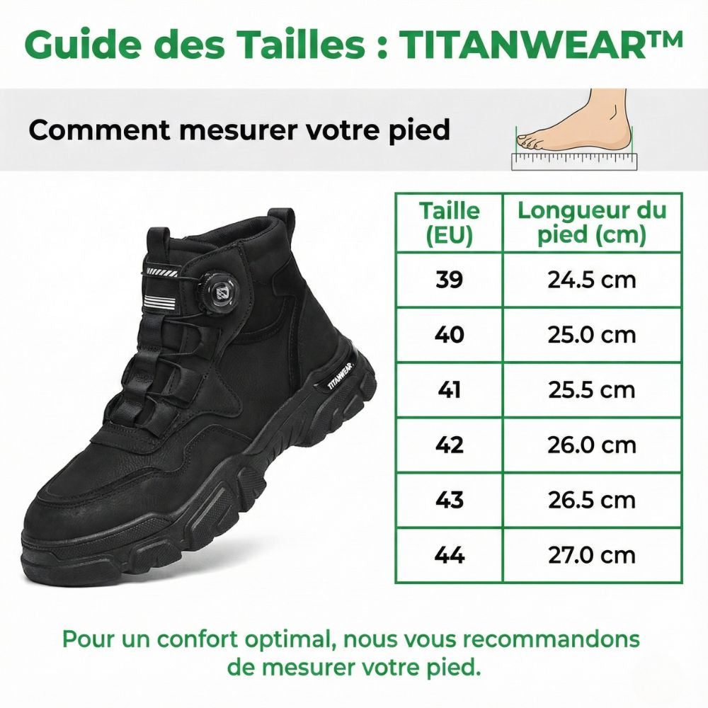 Grâce à leur conception montante, leur maintien de cheville et leur laçage ergonomique, les TITANWEAR™ s’adaptent facilement au pied et garantissent un excellent soutien. Leur design outdoor et leur solidité en font la paire parfaite pour marcher, travailler, bouger, ou simplement profiter d’un confort durable toute la journée.