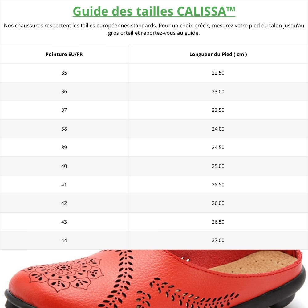 Alliant élégance et bien-être, les CALISSA™ offrent un équilibre parfait entre style, légèreté et confort quotidien. Leur conception en cuir véritable souple et leur doublure respirante assurent un maintien naturel du pied, sans frottement ni échauffement. Idéales pour les journées actives où l’on recherche à la fois confort, flexibilité et allure raffinée.