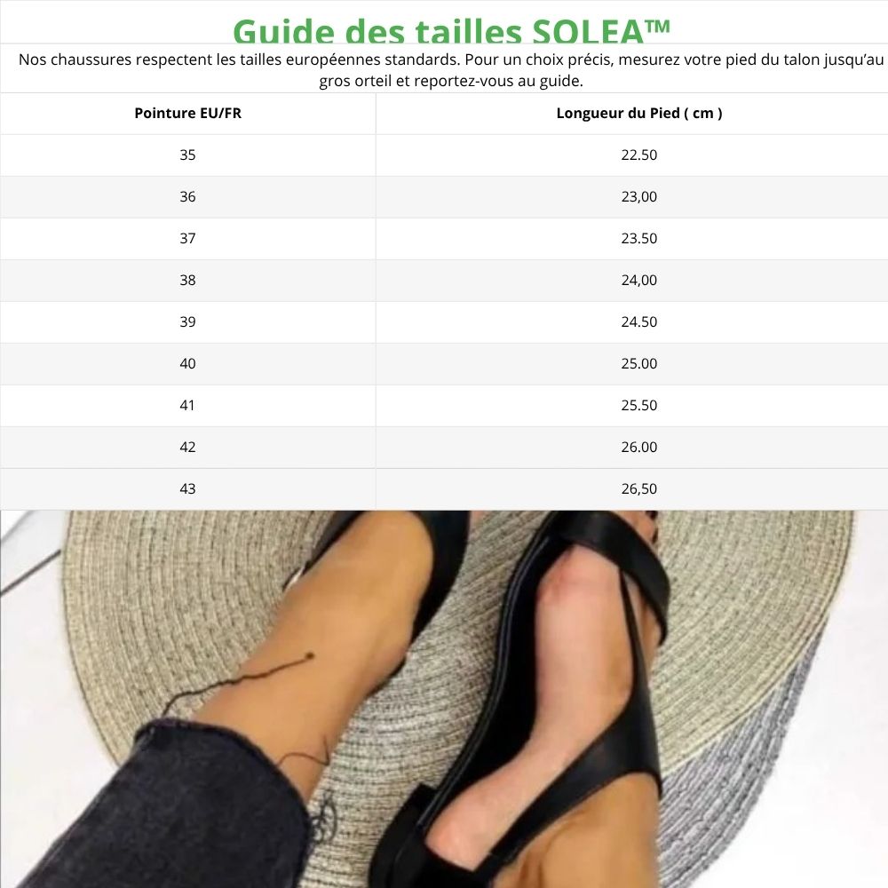 La semelle intérieure des SOLEA™ est composée d’une mousse à mémoire de forme orthopédique qui soutient la voûte plantaire, amortit les chocs et réduit les points de pression. Ce n’est pas une simple semelle de confort : elle favorise l’alignement du pied et soulage les douleurs liées à la marche prolongée.