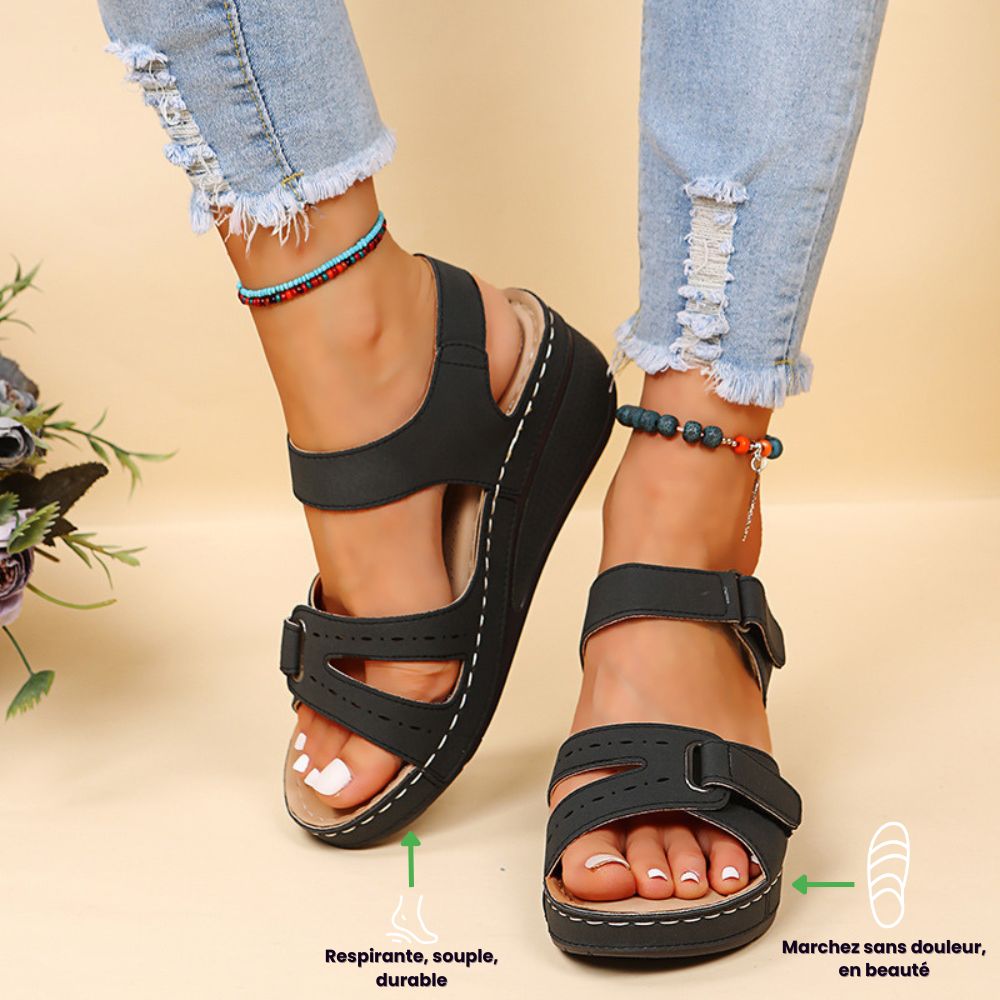 VELORA™ - Sandale compensée orthopédique – Confort ultime & style irrésistible