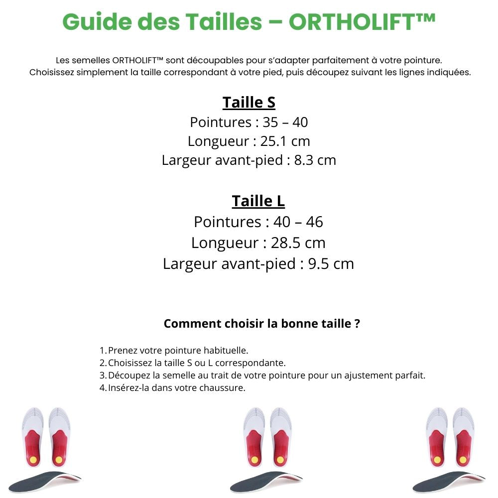 Découpables du 35 au 46, les ORTHOLIFT™ s’adaptent à toutes vos chaussures et à toutes les saisons.